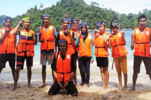Yang satu ini penting banget, Amazing People! Karena Pantai Tiga Warna ini memiliki air yang jernih juga panorama bawah laut berupa terumbu karang yang memikat, serta ada ikan-ikan yang kecil. Maka tak lengkap kalau tidak melakukan snorkeling di pantai ini. Eits, tapi sebelum itu kamu wajib mengenakan jaket pelampung ya! Tujuannya agar kamu tetap mengapung di air dan tidak menyentuh terumbu karang. Sebagai traveler yang baik, kamu harus selalu mematuhi peraturan yang ada ya! Jangan sampai kamu merusak ekosistem laut dengan cara merusak terumbu karang.