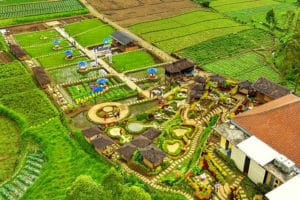 Kalau dilihat dari namanya, pasti kamu berpikir kalau kafe ini berada di tengah sawah, kan? Yup, tepat sekali! Tebakanmu benar. Cafe ini berada di tengah-tengah ladang persawahan dengan menyuguhkan pemandangan pegunungan yang sangat eksotis, jadi enak kalau dibuat tempat nongkrong sambil jeprat-jepret. Cafe ini dikelola oleh warga setempat, penjualnya pun juga warga sekitar. Makanan di sini nggak aneh-aneh kok, baru ada Nasi Jagung, Bakso, dan minuman kopi sachet. Harganya juga murah meriah, hanya Rp. 4.000,- sampai Rp. 20.000,- saja tapi kamu udah bisa dapet foto yang cantik.