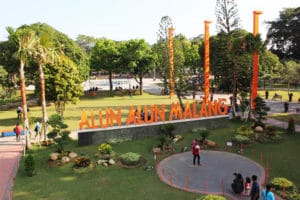 Wisata Malang satu ini merupakan ikon Kota Malang. Hal tersebut membuat penduduk Kota Malang maupun yang sedang berlibur menyempatkan datang untuk mengunjungi ikon Kota Malang ini. Udara sejuk yang melengkapi indahnya taman bunga beraneka rupa, pasti membuat kamu betah untuk berlama-lama nongkrong di tempat bersejarah ini. Sesuai dengan namanya, di bagian tengah alun-alun, terdapat kolam luas yang dipenuhi dengan tumbuhan teratai serta sebuah tugu yang berada tepat di tengah kolam tersebut. Pada saat malam hari, pemandangan akan lebih menarik karena adanya lampu sorot yang menyinari Tugu dan air mancur dengan warna yang dapat berubah-ubah. Hal tersebut sangat kece bila dijadikan spot foto, apalagi dengan gedung Balai Kota Malang sebagai latarnya. Untuk masuk ke Alun-Alun Tugu Malang tidak dikenakan tarif atau tiket masuk. Pengunjung hanya perlu membayar biaya parkir yang berada di depan SMAN 1 dan SMAN 4.
