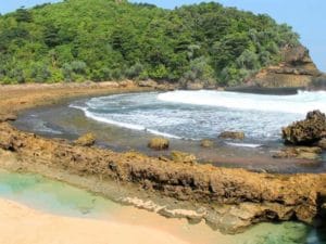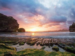 Hallo Amazing People, jika berkunjung ke Malang, kalian nggak boleh melewatkan keindahan pantai yang sebagian besar terletak di bagian Malang Selatan. Buat kalian yang ingin menikmati suasana romantis bersama pasangan, atau menikmati keindahan senja bersama orang-orang terdekat, Pantai Batu Bengkung sangat cocok untuk dikunjungi. Pernah dengar tentang pantai yang satu ini? Pantai batu Bengkung terletak di desa Gajahrejo, kecamatan Gedangan, Kabupaten Malang. Lokasi pantai ini tidak terlalu jauh dari Kota Malang, kalian hanya membutuhkan waktu sekitar dua jam perjalanan guys.