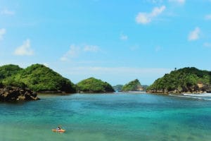 Pantai Teluk Asmara tak tanggung-tanggung kalau menyuguhkan keindahan panoramanya. Saat kamu ke sini, mata kamu akan dimanjakan dengan pemandangan pulau-pulau kecil yang mengelilingi pantai. Pemandangan pasir putih yang membentang luas juga paduan gulungan ombak yang datang menghampiri bibir pantai membuat kamu betah berlama-lama di sini.