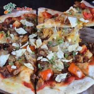 Melirik pada menu pizza, Malibu menyediakannya dalam dua ukuran, yakni medium dan large. Keunikan pizza Malibu terletak pada proses pengolahannya yang dioven dengan menggunakan kayu bakar. Beberapa menu pizza yang ditawarkan seperti Bolognaise, Mamma Kevino, Papa Kezia, Quattro Stagioni, Margherita, dan lainnya.