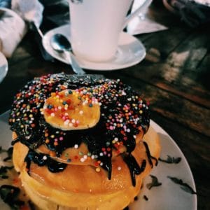 Cafe ini menyediakan hidangan unik dengan tampilan yang menarik. Sajian utama mereka ada aneka olahan roti dengan topping unik di atasnya, salah satunya varian coklat yang di atasnya diberi es krim coklat dan topping coklat lainnya. Berlokasi di Jl. Seokarno Hatta No.98c, Malang.