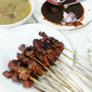 Warung sate yang satu ini terkenal dengan potongan daging sapi empuk berselimut bumbu yang meresap.