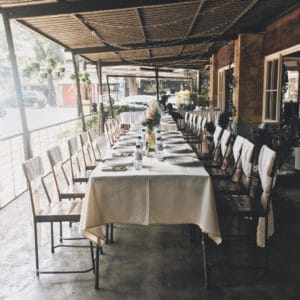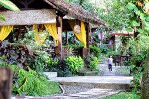 Suasana asri. Berada di bantaran Sungai Bango. Suasana alam yang terasa familiar ini berpadu sempurna dengan bale-bale dan lampu-lampu antik. Banyak menu-menu nusantara yang terhidang dan menggoda, seperti nasi buk Madura atau nasi timbel bakar.