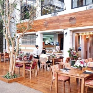 Meja-meja ditata manis dengan dekorasi taman nan hijau. Perpaduan furnitur kayu dan vertical garden yang elegan. Nasi buk Madura atau semur lidah sapi cuma sebagian menu khas nusantara yang menggoda. Masih banyak menu menarik lainnya disini.