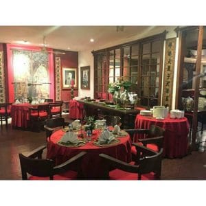 Dekorasi resto ini penuh detail Mandarin yang khas. Peninggalan jaman Belanda juga tampak pada gaya perabotan marmer, sedangkan beberapa arca dan ukiran menunjukkan artistiknya peninggalan budaya lokal. Menyediakan masakan Jawa, masakan Oriental, atau perpaduan masakan Jawa-Belanda, dan menu masakan Perancis.