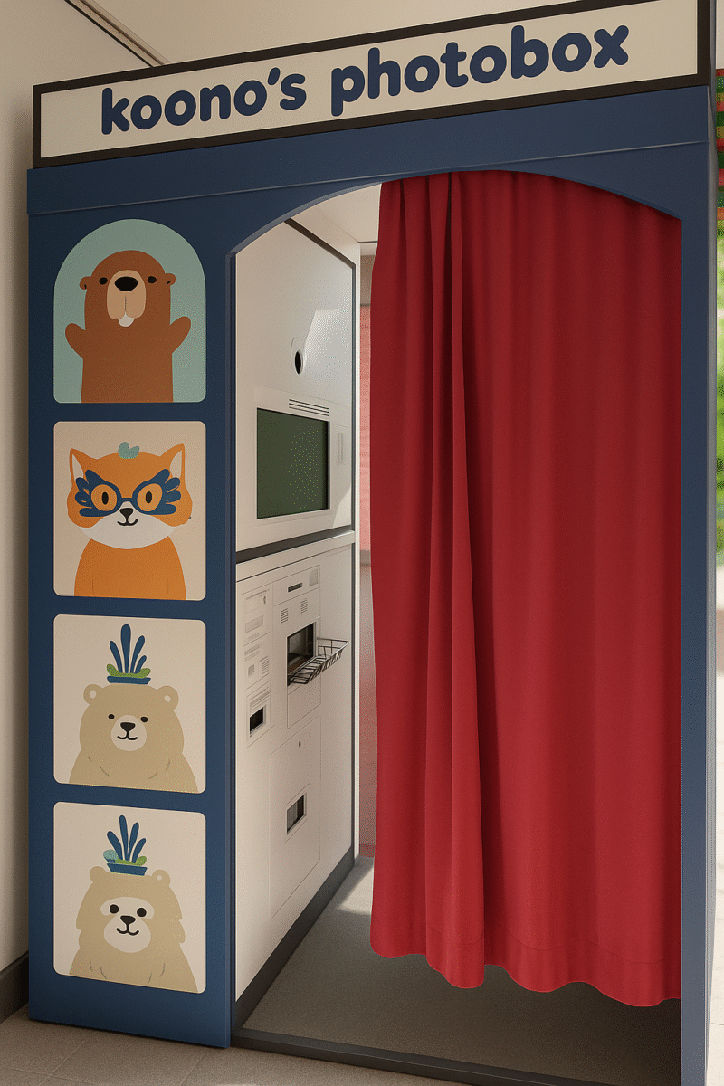 Ada juga kafe bergaya tropis di tengah kota yang mengombinasikan desain interior cerah dengan fasilitas photobox di area depan. Begitu masuk, pengunjung langsung disambut mesin foto instan, menjadikan aktivitas nongkrong terasa lebih berwarna. Suasananya cocok untuk mereka yang ingin mengabadikan momen dengan cara sederhana namun menyenangkan.