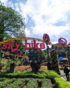 Wahana Sky Bike atau bersepeda diatas udara merupakan salah satu wahana terbaru di Selecta. Kamu bisa mencoba keseruan menaiki sepeda diatas udara sambil melihat taman bunga di bawahmu. Sambil bersepeda kamu bisa menikmati keindahan alam yang tersaji di taman wisata ini.