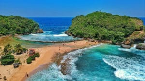 Area pantainya yang terpisah-pisah. kamu bisa menikmati area pasir putih yang panjang di satu sisi, teluk putri, bahkan ada area pantai yang hanya berupa karang-karang batu. Disini juga ada pulau kecil yang bisa kamu lewati melalui jembatan kayu.