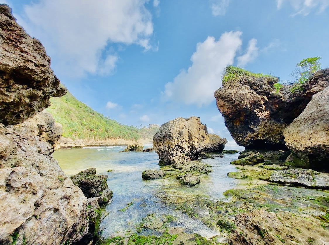 Disebut-sebut sebagai “Raja Ampat-nya Malang”, Teluk Asmara punya gugusan pulau kecil dan air laut jernih kehijauan. Ombaknya relatif tenang karena terlindungi tebing dan pulau-pulau karang, jadi aman buat anak-anak bermain air di tepi pantai.