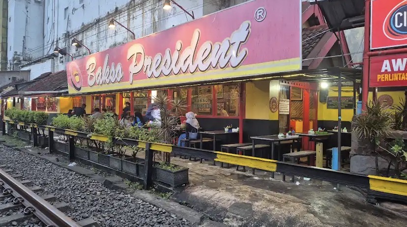 Tak hanya soal rasa, suasana sederhana dan otentik menjadi nilai tambah tersendiri. Meja kayu panjang, kursi plastik, dan pemandangan kereta lewat beberapa meter di depan mata memberi pengalaman kuliner yang berbeda dari tempat lain. Banyak pengunjung yang menjadikan momen ini sebagai latar foto — bahkan suara klakson kereta yang lewat sudah seperti “ciri khas” Bakso President yang selalu dinanti.