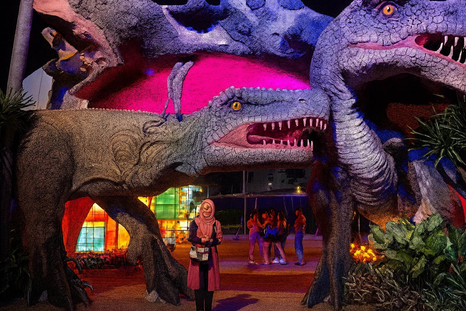 Daya tarik berikutnya ada di zona Dino Park yang menampilkan replika dinosaurus seperti T-Rex, Spinosaurus, hingga Triceratops. Dengan dukungan teknologi suara dan gerakan, pengalaman ini tidak hanya menghibur tetapi juga memberikan edukasi seputar kehidupan prasejarah.