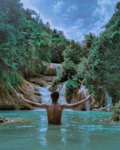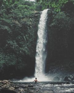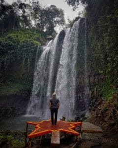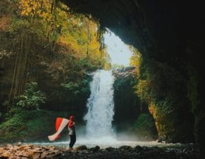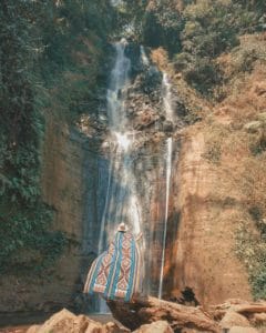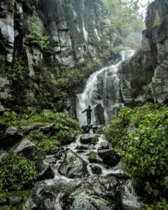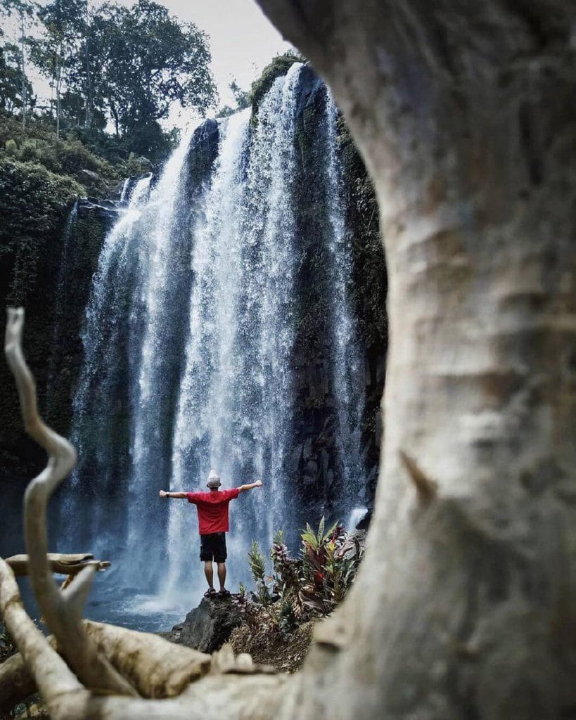 Pesona alam yang menakjubkan menyajikan tiga titik air terjun dalam satu tempat. Kamu bisa melihat pelangi yang begitu sangat jelas. Aliran airnya cukup deras membuat suasana di sekitarnya makin sejuk.