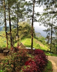 Satu kawasan dengan Coban Rondo sehingga kamu bisa menyatu dengan alam. Ada hammock, dek kayu di antara pepohonan, juga kursi santai di tengah hutan pinus dan keindahan lembah Songgoriti. Wajib cobain tahu dancoknya yang mantul.
