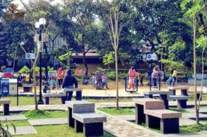 Taman yang mengusung konceo ini cocok untuk kamu yang mau liburan bareng keluarga. Disediakan area playground, lapangan futsal, fasilitas olahraga dan juga jogging track. Taman ini tidak memungut biaya masuk.