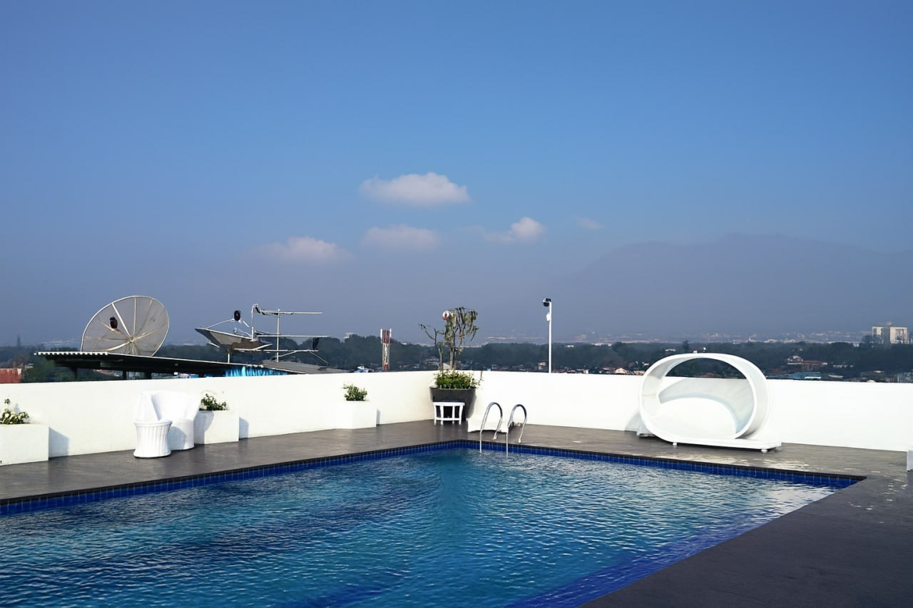 Uniknya, kolam renang ada di rooftop lantai 8 dengan pemandangan kota. Tiket Rp50.000 sudah termasuk nasi goreng dan minuman, buka setiap hari pukul 06.00–18.00.