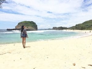 Dikelilingi karang membuat pantai ini terlihat eksotis, dan ada yang menyebutkan Raja Ampatnya Malang. Suasana asri dengan pasir pantai berwarna putih bersih. Pemandang senja yang ditawarkan pun indah.